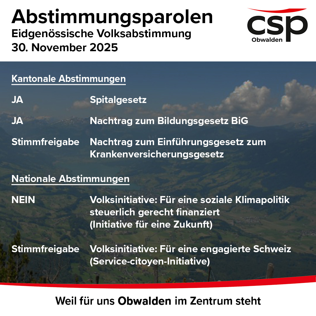 Die CSP Obwalden hat an ihrem Parteitag folgende Parolen gefasst:
